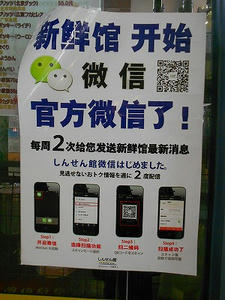 いろいろ買い物していたら、「微信を始めました」との店内アナウンスが。