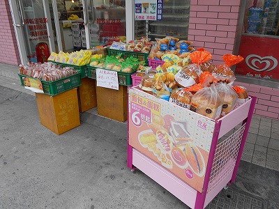 ↑30度を超えるような真夏の上海ですが、外でパンを売っていました。