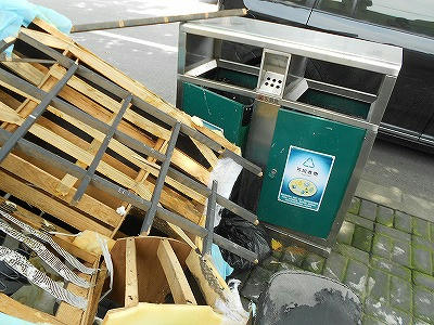 ゴミ箱の前にゴミが捨ててありました。