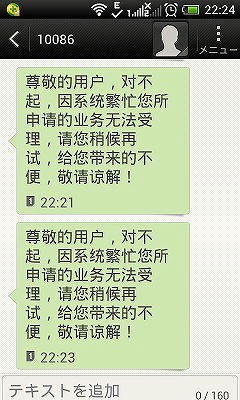 中国移動からこんなメッセージが立て続けに来ました。