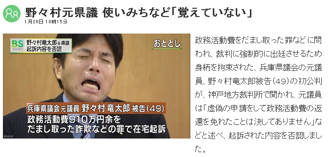 野々村被告関連のニュースでためになった話はこれぐらいかなぁ。