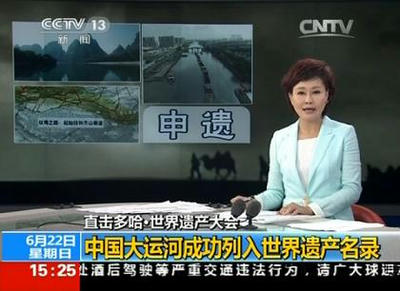 中国新聞社によると、国連教育科学文化機関(ユネスコ)は、カタールの首都ドーハで開催中の世界遺産委員会で、「中国大運河」の世界遺産登録に同意した。