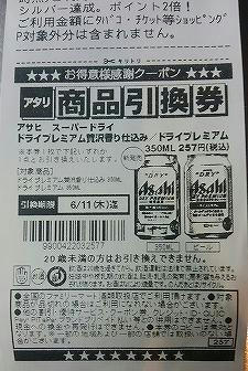 ↑アサヒスーパードライ ドライプレミアム 贅沢香り仕込みの引換券