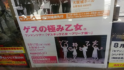 ゲスの極み乙女。9月17日大阪城ホールのライブのチケットのお知らせ。