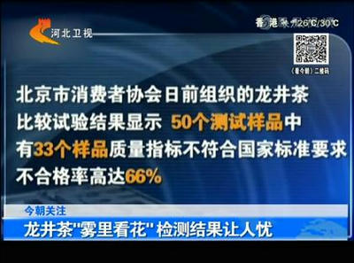 北京市消費者協会は、高級茶として知られる龍井茶をサンプル検査した結果、50件中33件が基準を満たさず、「西湖龍茶」を冠した13件は産地偽装が認められたと公表した。