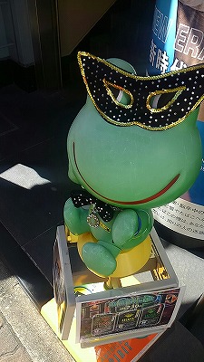 薬局の前にいるカエルがハロウィン仕様でこんなふうになっていました。