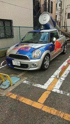 レッドブルカーがコインパーキングに停まっていたのがなんかおもしろかったです。