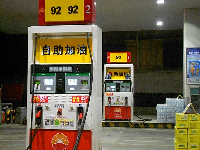 ↑中国のセルフ式ガソリンスタンド。