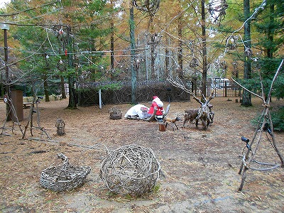 入り口にサンタとトナカイがありました。