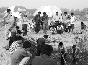 工事現場で出土品、作業員とたんに群がり「それっ。掘れっ」 引用