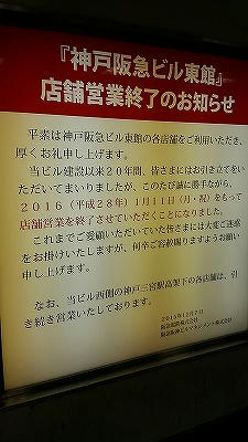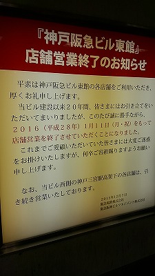 「神戸阪急ビル東館」店舗営業終了のお知らせが貼ってありました。