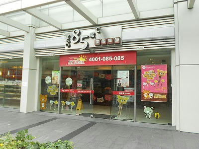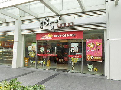上海中にあるパン屋(カフェ)「85度C」。