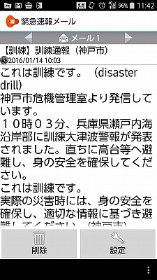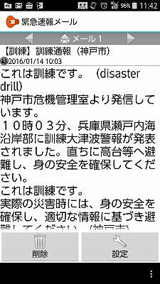 本日1月14日、神戸市から訓練通報メールが来ました。