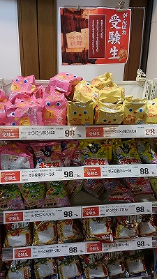 「合格」的な名前がついているお菓子がたくさん売られていました。