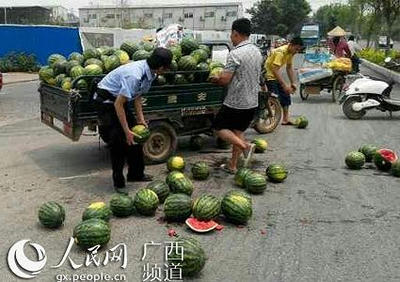中国共産党機関紙「人民日報」の併設サイト、人民網が広西チワン族自治区南寧市内で農産品卸売市場に向かう車からスイカが次々に転落したところ、見ていた市民が集まり落とし主に戻し、割れたスイカを取り除くなど道路清掃までしたと伝えた。 いいニュースなのですが、なんか腑に落ちない点が。