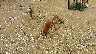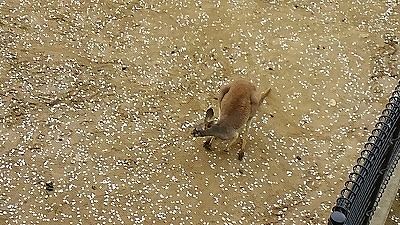 桜の花びらを食べるのに夢中なカンガルー。