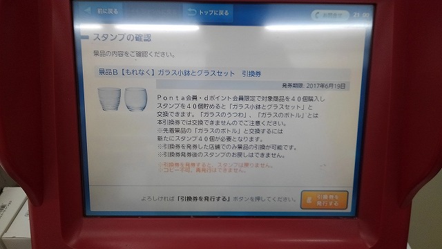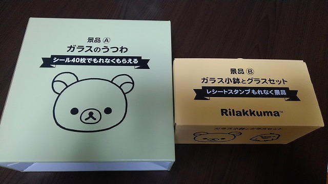 40個貯まるとガラスのボトルか小鉢セットがもらえるのです。