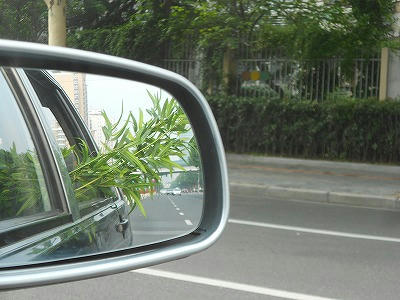 バックミラー越しに見る笹