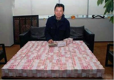 一方で、米紙ニューヨーク・タイムズの買収を狙ったことで知られる陳光標氏は、中国の富裕層では珍しく慈善家であるともされるが、昨年12月にユーチューブに投稿された動画には違和感を覚える。陳氏は江蘇省南京市で、重さ計16トンもの百元札を積み上げて3面の壁と机を作り、自らの経済活動を示すパフォーマンスを行った。百元札16トンなら約14億元(約238億円)相当になるという。これを見せびらかす悪趣味はどこから生まれるのか、理解に苦しむ。 中国でお金持ちのことを「土豪」と呼びます。