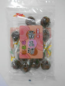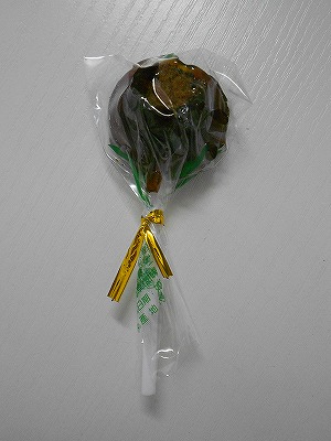 黒糖味のキャンディーの中央に、しょっぱい梅干がついているキャンディーです。