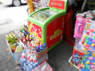 ↑東北大板の冷凍庫と、子ども用の玩具、さらに色とりどりのペットボトル。
