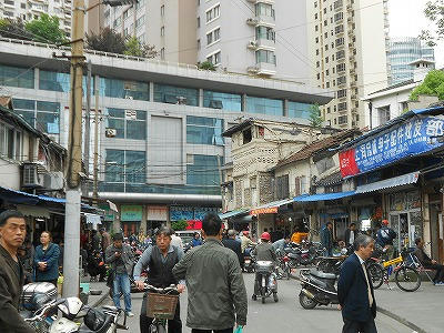 上海地下鉄3号線宝山路駅周辺の怪しいお店が並んだ通り。