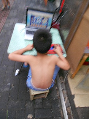 夏休みなので子どもたちも上半身裸で元気に走り回っているのですが、