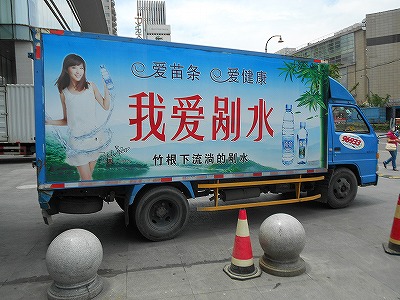 中国ではミネラルウォーターを飲むのが一般的(というか水道水が飲めないから)なので、さまざまな種類の水が売られていました。
