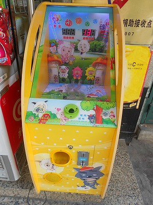 そんな中国(上海)で、今年の春ごろから商店の前にポツポツと子ども用のゲーム筐体(?)が置かれるようになりました。