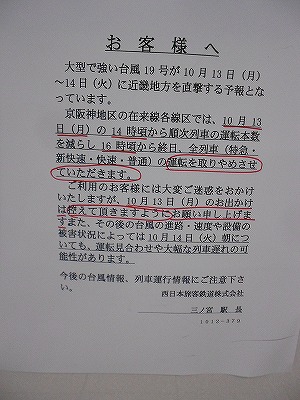 三ノ宮駅の張り紙。
