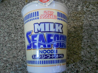 これは「シーフードヌードル」をミルクで作ると美味しいよ、という消費者の声を反映した商品ですね。