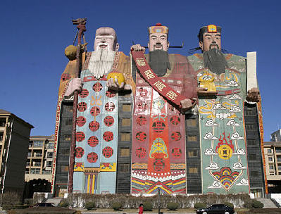 七福神の一つ、福禄寿(ふくろくじゅ)の福星・禄星・寿星の三星をかたどり、そのまま巨大化させたこのホテル。「世界最大の象形建築」としてギネスブック入りを果たし、2011年には「中国で最も醜い建築物」にも選ばれたこともある。