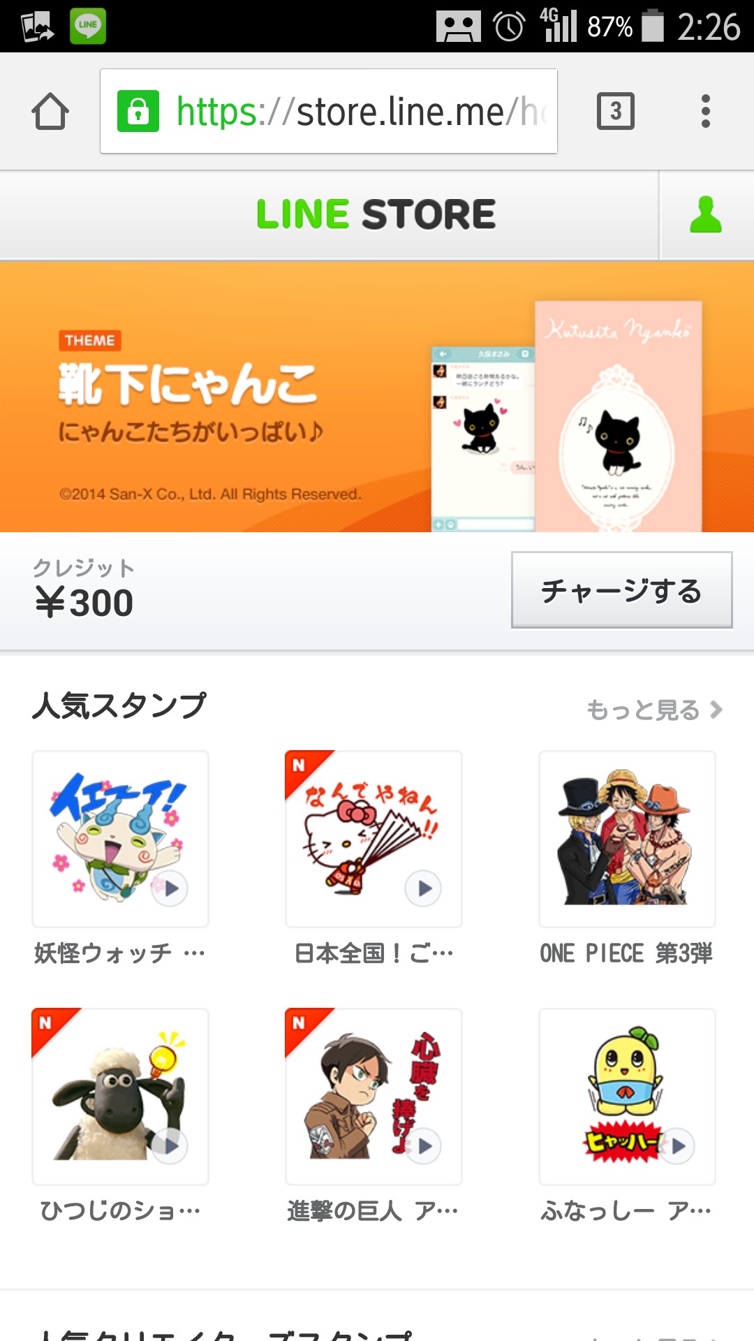 そしてスマホからLINE STOREにログインしてポイントの確認。