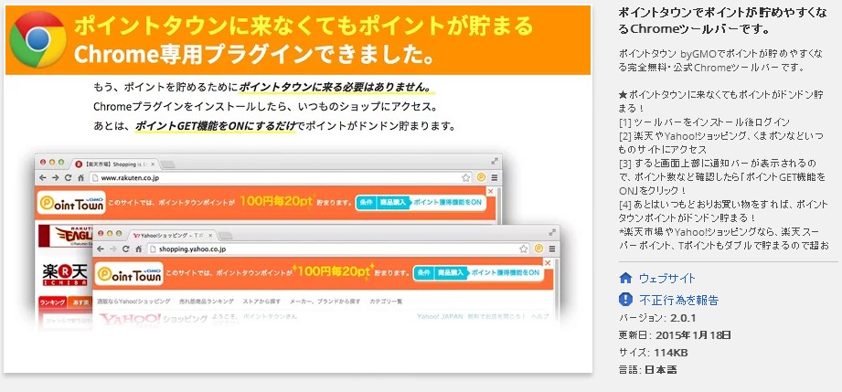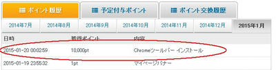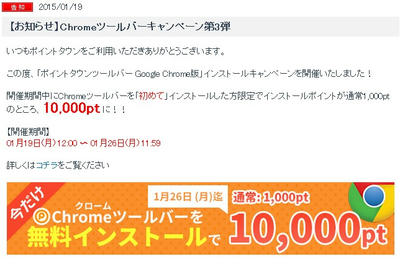 ポイントタウンのChromeツールバーをインストールすると10000ポイントもらえるというもの。