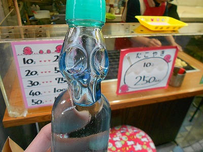お店を見ていると「ラムネ 100円」という張り紙があったので、ラムネも注文。