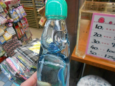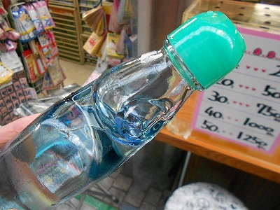 案内人にラムネの正しい飲み方をレクチャーしました。