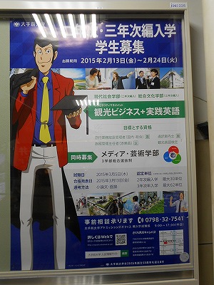 柱にあった大学の学生募集のポスター。