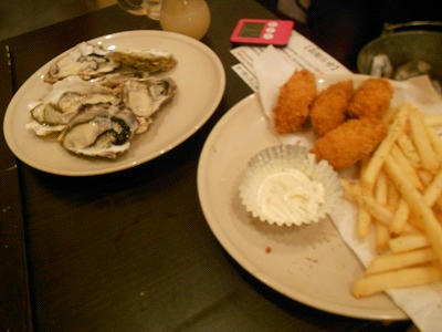 生牡蠣と牡蠣フライでビールをゴクゴク飲みます。