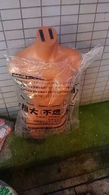 ↑ゴミ捨て場に首から下だけのマネキンが捨てられていました。