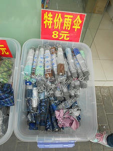 そしてこの傘は地下鉄の駅入り口で10元で売られます。